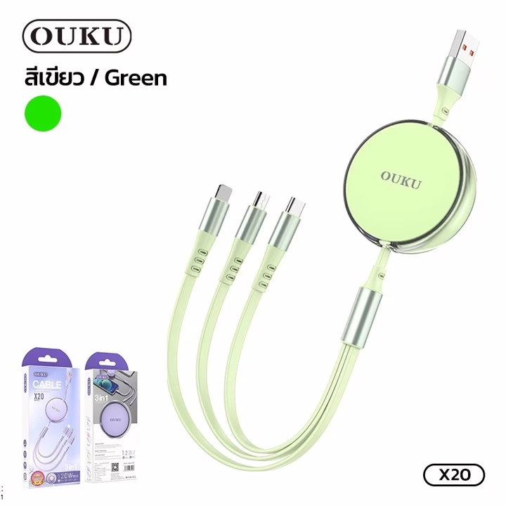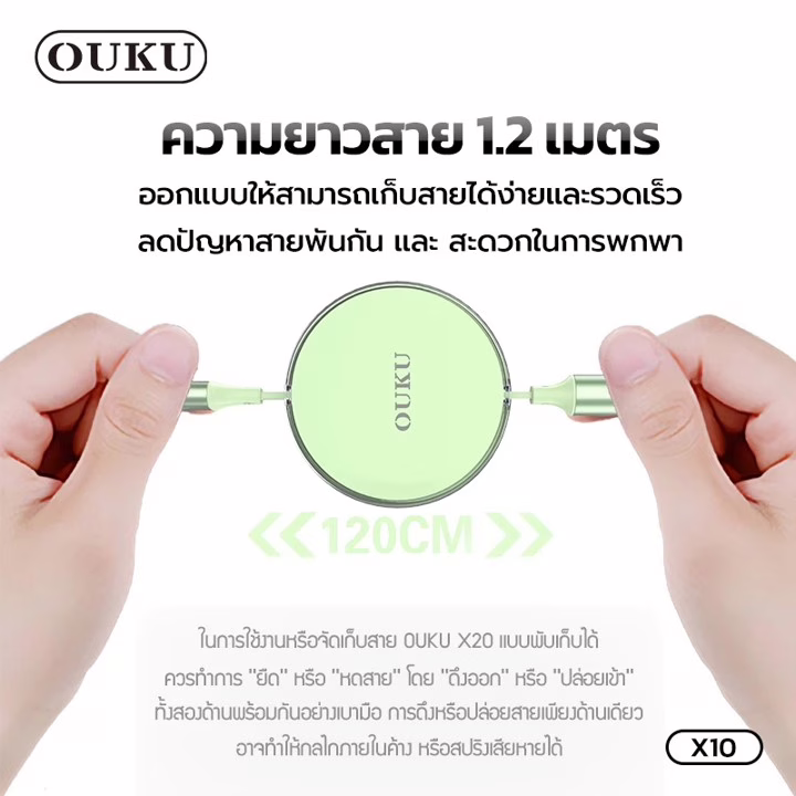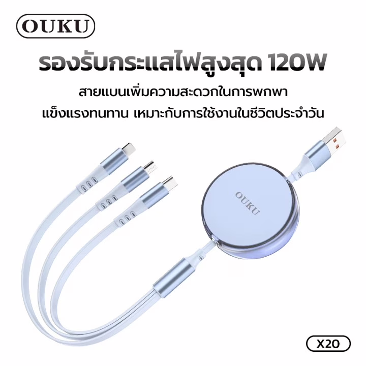 OUKU X20 3in1 สายชาร์จ 3 หัว พร้อมตลับเก็บสายชาร์จ Fast Charger 120W ความยาว1.2 เมตร สำหรับ iOS + Micro + Type-C