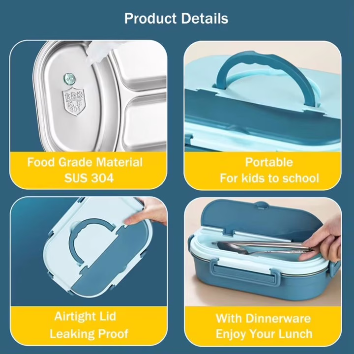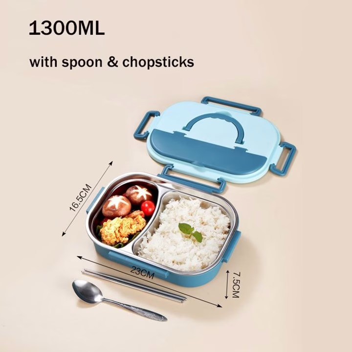 Feature highlights:Crafted from food-grade Stainless Steel 304 and PP, this lunch box ensures safety and durability. Its 1300ml capacity and compact size of 23*16.5*7.5cm make it ideal for kids, school, office, or outdoor use. Available in vibrant colors like green, blue, pink, and yellow, it combines functionality with a stylish Korean design.
