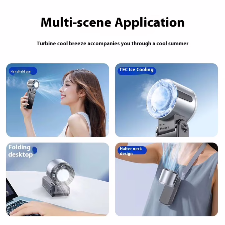 Feature highlights:This High Quality Portable Handheld Mini Rechargeable Fan is perfect for outdoor, car, and household use. Featuring a mini foldable turbo design, it includes a USB rechargeable battery with a working time of 3-10 hours, touch control, and operates quietly at 30-34dB. It also has CE certification, ensuring compliance with EU safety standards and providing market access.