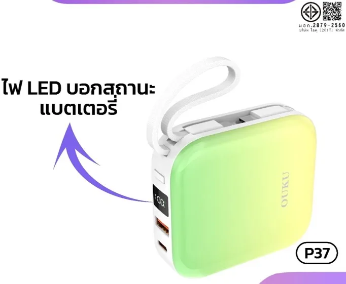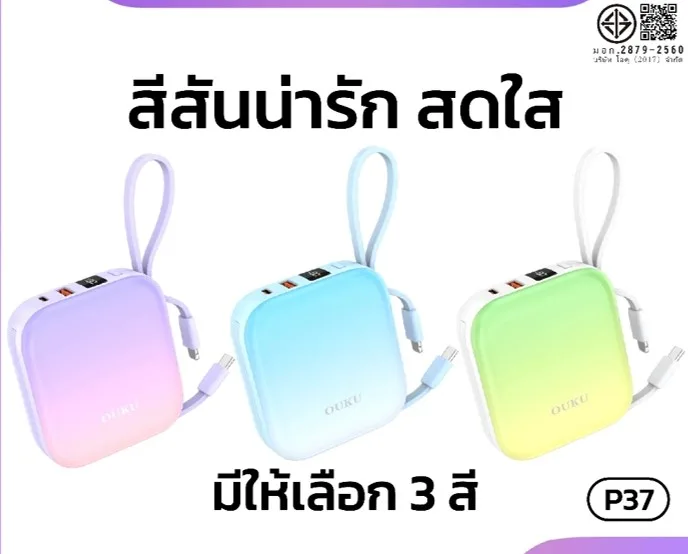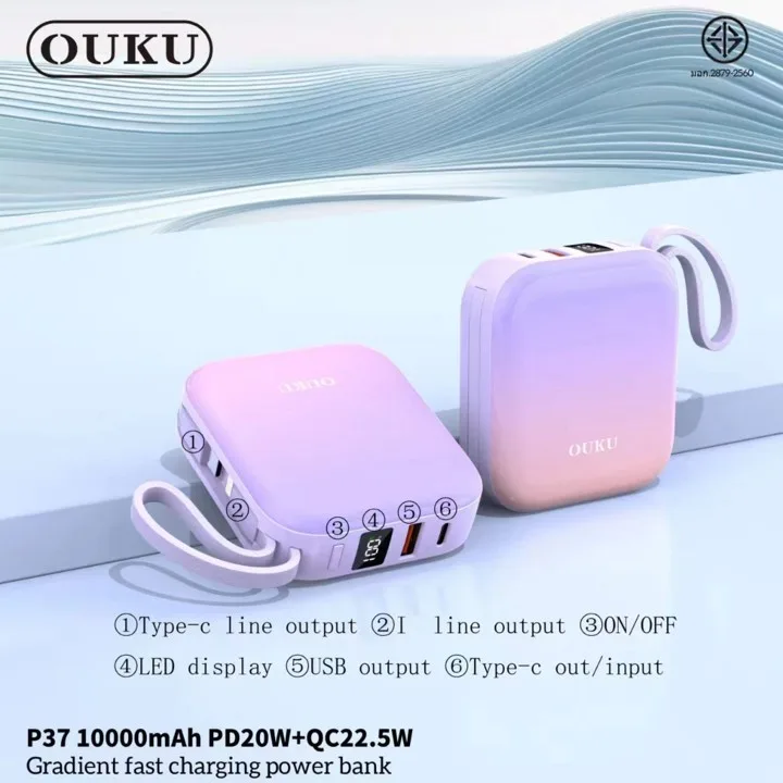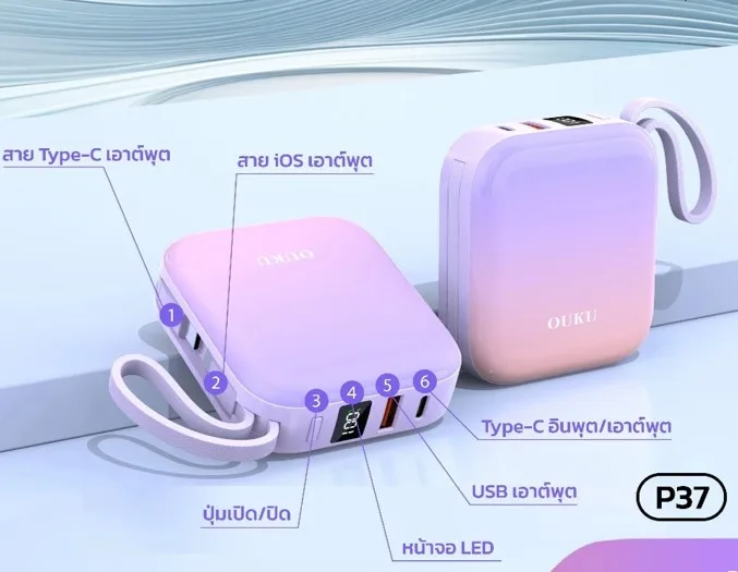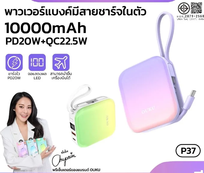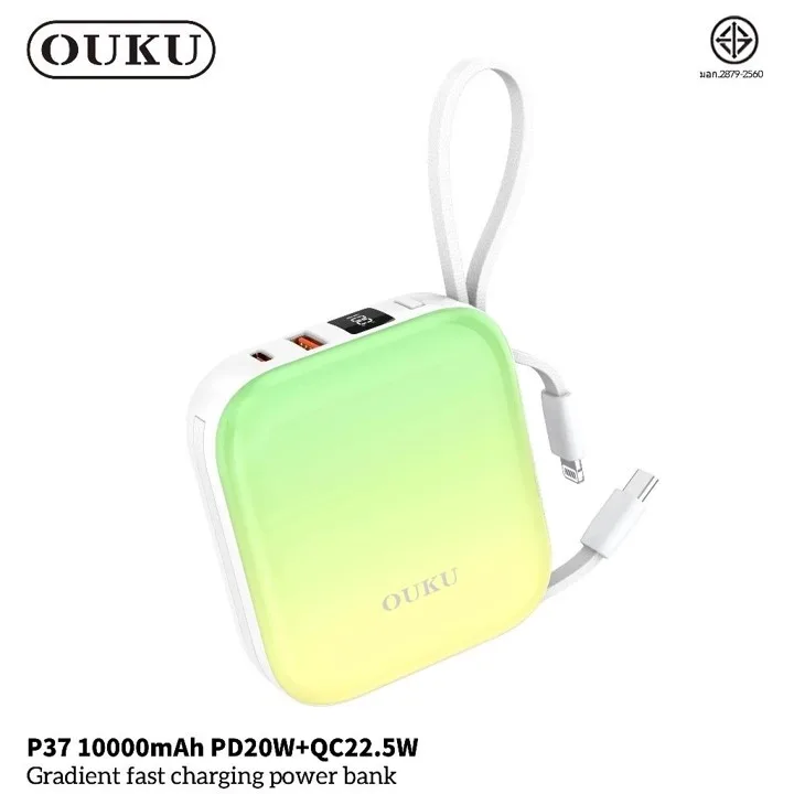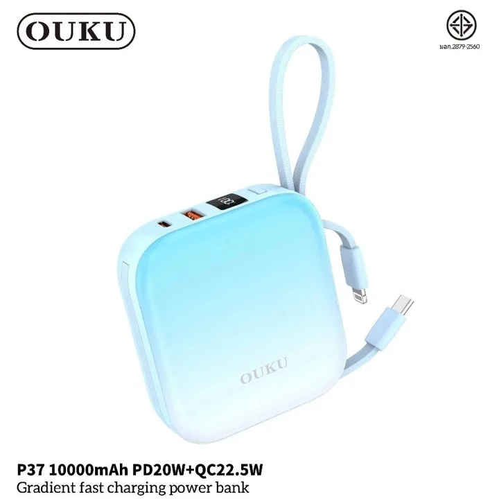 OUKU P37 Powerbank พาวเวอร์แบงค์ 10000mAh PD20W+QC22.5W แบตเตอรี่สำรอง มีสายชาร์จในตัว ชาร์จเร็ว