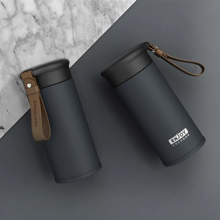 Feature highlights:This 330/450ml vacuum flask is made of stainless steel, ensuring durability and modern design. It supports customization with a stylish handgrip accessory, suitable for coffee, tea, or travel use. The product is sustainable and perfect for office or home use.